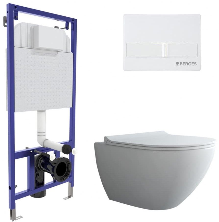 Комплект Berges 4в1 043265: инсталляция NOVUM525 кнопка L1 белая унитаз Puma XL Rimless сиденье Toma Slim SO