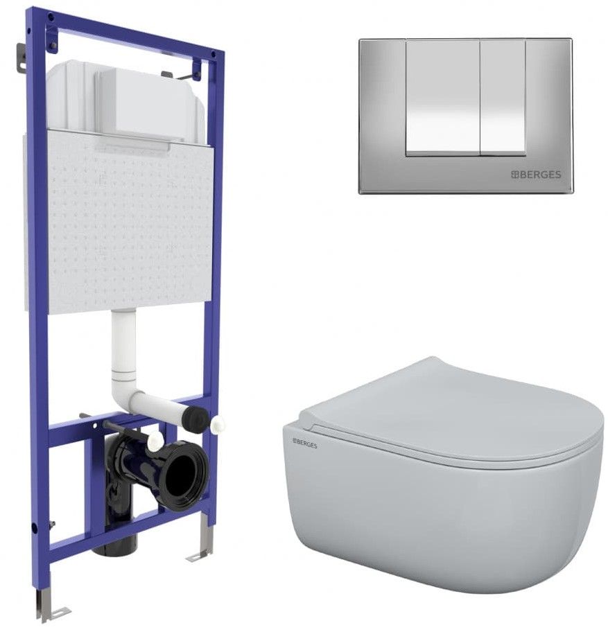 Комплект Berges 4в1 047243: инсталляция NOVUM525 кнопка S3 хром глянец унитаз EGO Rimless сиденье Toma Slim SO