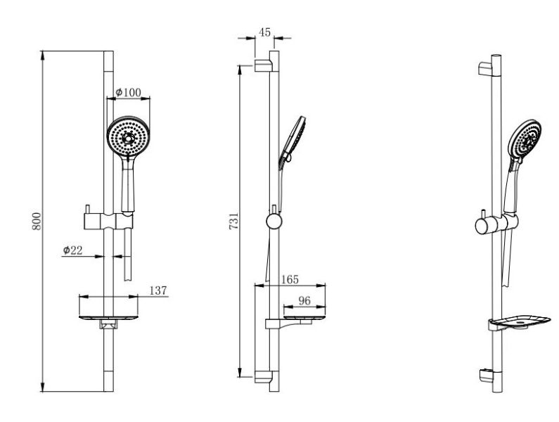 • Душевой гарнитур: душевая стойка с мыльницей, лейка, шланг