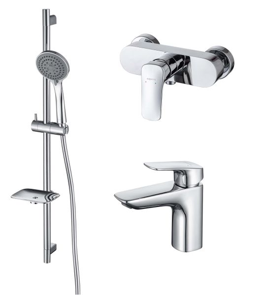 • Душевой гарнитур: душевая стойка с мыльницей, лейка, шланг