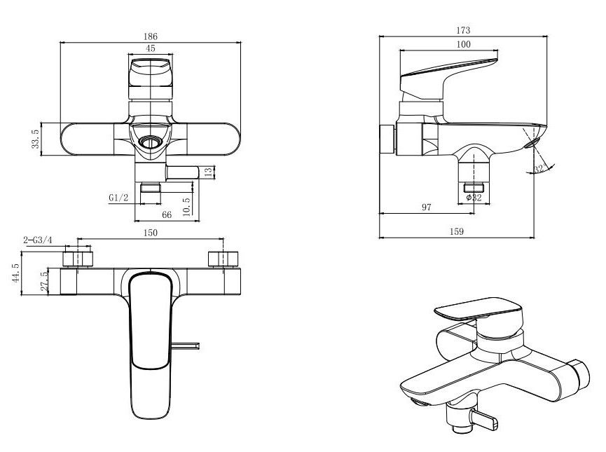 • Смеситель для ванны