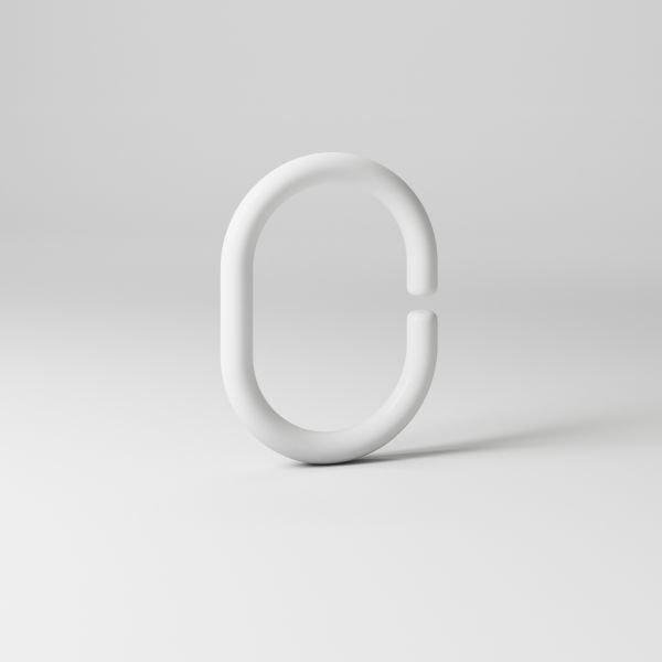 Набор колец для шторы в ванную комнату. В комплекте 12 белых колец С-образной формы. Упаковка - ПВХ пакет.
