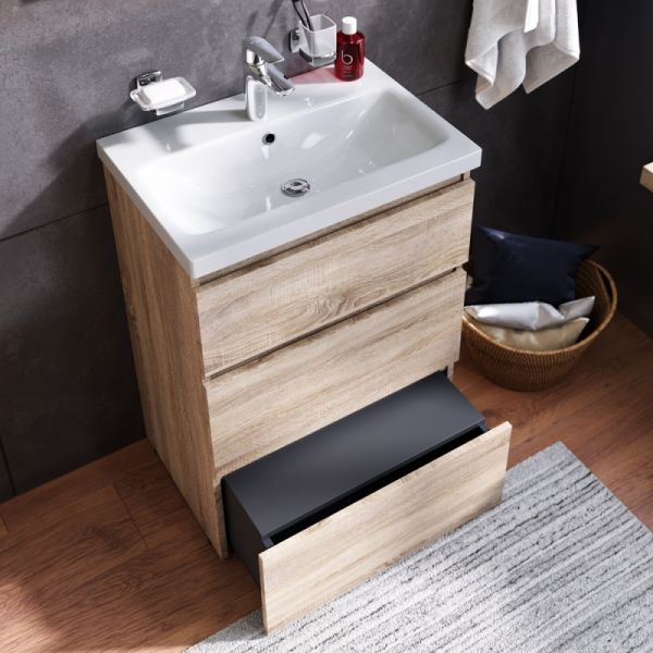 Комплект мебели для ванной AM.PM Gem S 60 BK91GC.Характеристики:Тумба под раковину с тремя выдвижными ящиками и двумя хромированными ножками.