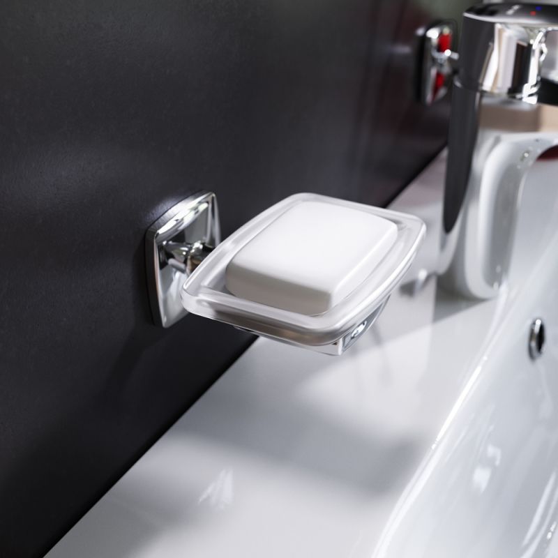 Мыльница из матового стекла с настенным держателем цвета хром.