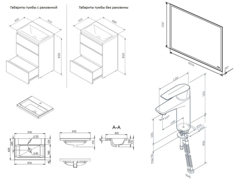 Размеры (ШхВхГ): 600х810х425 мм.