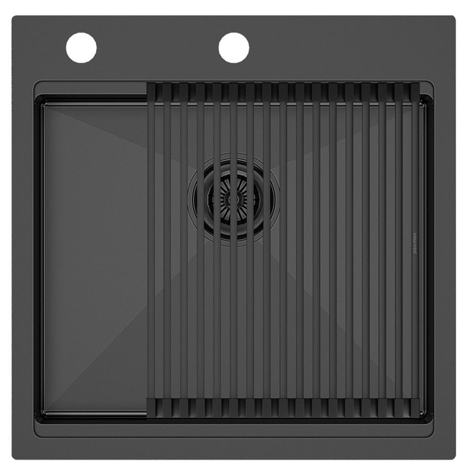Комплект Paulmark: мойка Kroner-Pro 51 и ролл-мат Pro PM705151-GM+R405-GM воронёная сталь