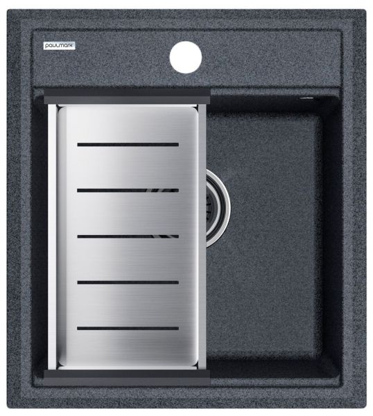 Комплект Paulmark: мойка Stepia 45 и коландер Advance PM114651-DG+A375-BS графит/брашированная нержавеющая сталь купить