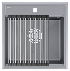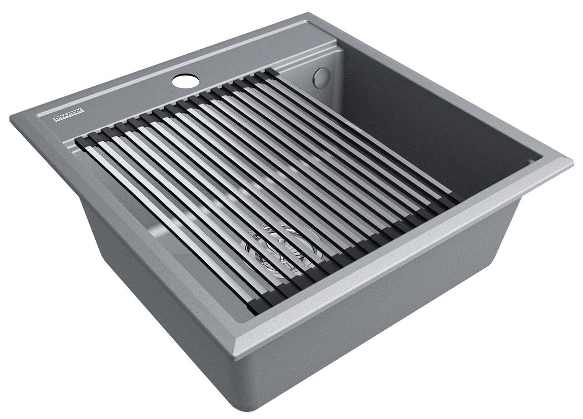 Комплект мойка STEPIA 50 + ролл-мат STEP, PM115051-GRM+R375-BSСтильный и многофункциональный комплект мойки из композитного материала на основе гранита и ролл-мата из высококачественной нержавеющей стали для создания комфортной рабочей зоны на вашей кухне.Мойка STEPIA 50 изготовлена из IT-GRANIT – композитного материала на основе гранита, благодаря чему мойка не потеряет свой первоначальный цвет за многие годы использования даже при длительном воздействии солнечных лучей. Материал мойки устойчив к сколам, царапинам и деформациям. На горизонтальных гранях чаши мойки предусмотрены специальные выступы-ступеньки, которые позволяют использовать такие аксессуары, как ролл-маты, доски, коландеры и пр. для создания дополнительной рабочей поверхности на кухне. Дно чаши мойки имеет 4 грани, направленных к сливу под индивидуальным градусом для максимально быстрого ухода воды.