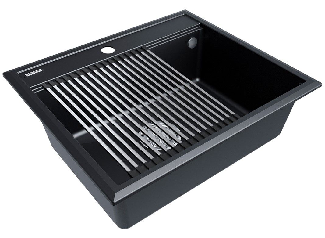 Комплект мойка STEPIA 60 + ролл-мат STEP, PM115951-BLM+R375-BSСтильный и многофункциональный комплект мойки из композитного материала на основе гранита и ролл-мата из высококачественной нержавеющей стали для создания комфортной рабочей зоны на вашей кухне.Мойка STEPIA 60 изготовлена из IT-GRANIT – композитного материала на основе гранита, благодаря чему мойка не потеряет свой первоначальный цвет за многие годы использования даже при длительном воздействии солнечных лучей. Материал мойки устойчив к сколам, царапинам и деформациям. На горизонтальных гранях чаши мойки предусмотрены специальные выступы-ступеньки, которые позволяют использовать такие аксессуары, как ролл-маты, доски, коландеры и пр. для создания дополнительной рабочей поверхности на кухне. Дно чаши мойки имеет 4 грани, направленных к сливу под индивидуальным градусом для максимально быстрого ухода воды.