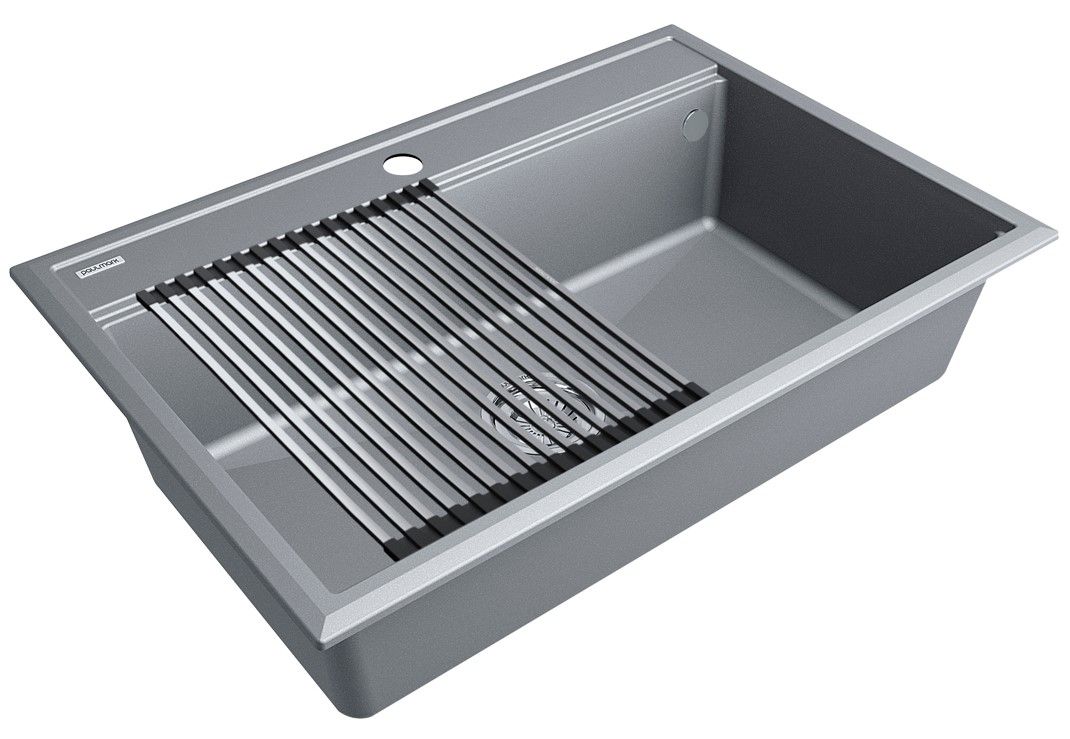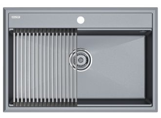 Комплект мойка STEPIA 80 + ролл-мат STEP, PM117551-GRM+R375-BSСтильный и многофункциональный комплект мойки из композитного материала на основе гранита и ролл-мата из высококачественной нержавеющей стали для создания комфортной рабочей зоны на вашей кухне.Мойка STEPIA 80 изготовлена из IT-GRANIT – композитного материала на основе гранита, благодаря чему мойка не потеряет свой первоначальный цвет за многие годы использования даже при длительном воздействии солнечных лучей. Материал мойки устойчив к сколам, царапинам и деформациям. На горизонтальных гранях чаши мойки предусмотрены специальные выступы-ступеньки, которые позволяют использовать такие аксессуары, как ролл-маты, доски, коландеры и пр. для создания дополнительной рабочей поверхности на кухне. Дно чаши мойки имеет 4 грани, направленных к сливу под индивидуальным градусом для максимально быстрого ухода воды.