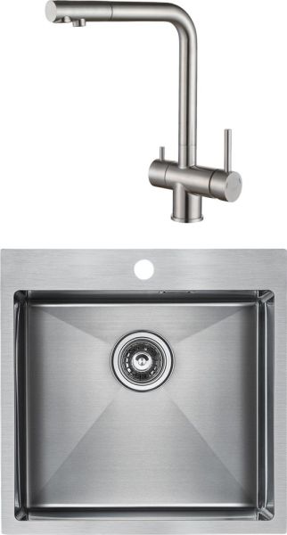Комплект Paulmark Velten PM905151-BS брашированная нерж. сталь + Смеситель Paulmark Skalen Sk213020-SS для кухонной мойки