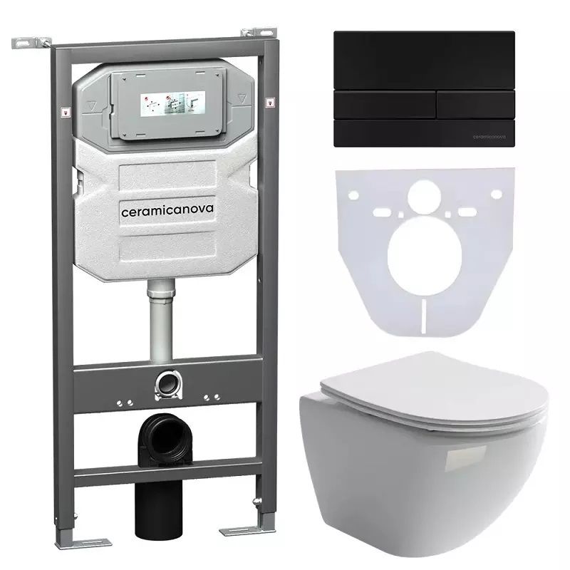 Комплект с инсталляцией Ceramica Nova CN4002_1002B_1000 унитаз Metropol CN4002 крышка-сиденье с микролифтом и инсталляция Envision CN1002B с чёрной матовой кнопкой смыва Flat купить