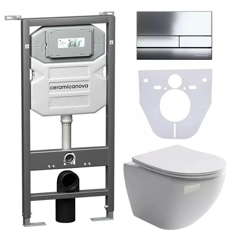 Комплект с инсталляцией Ceramica Nova CN4002_1002CH_1000 унитаз Metropol CN4002 крышка-сиденье с микролифтом и инсталляция Envision CN1002CH с кнопкой смыва хром Flat купить