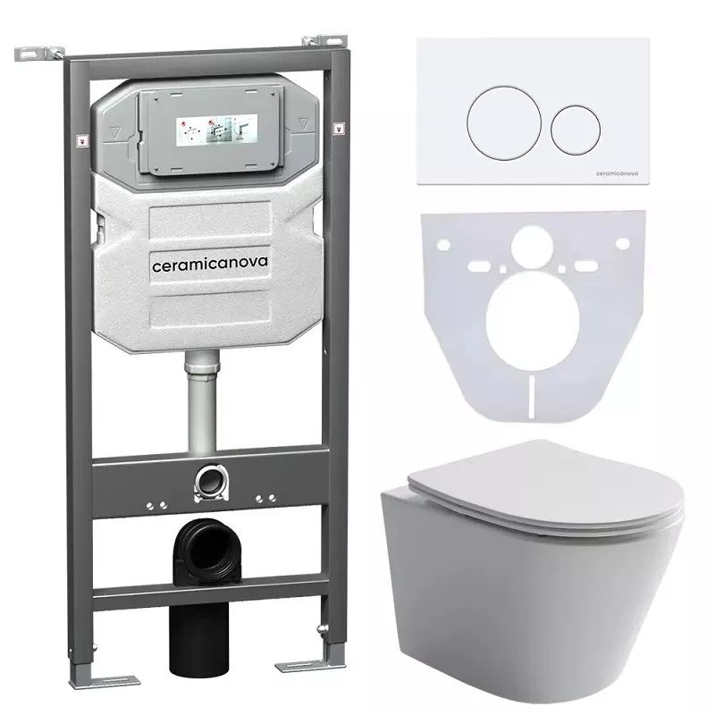 Комплект с инсталляцией Ceramica Nova CN6000_1001W_1000 унитаз Balearica CN6000 крышка-сиденье с микролифтом и инсталляция Envision CN1001W с белой матовой кнопкой смыва Round