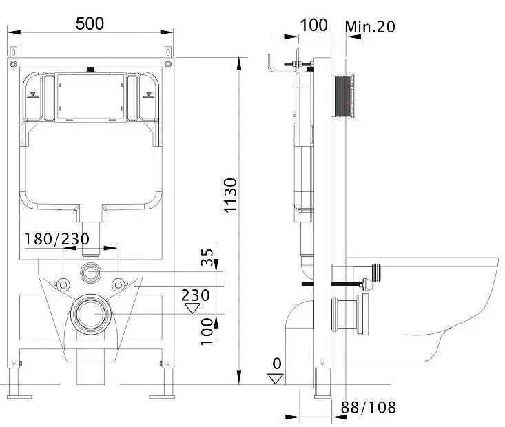 Комплект SET AQUATEK БЕТТА: рама AQUATEK Standard INS-0000012 + унитаз БЕТТА AQ1253W-00 с тонким сиденьем soft-close (плавное закрывание)