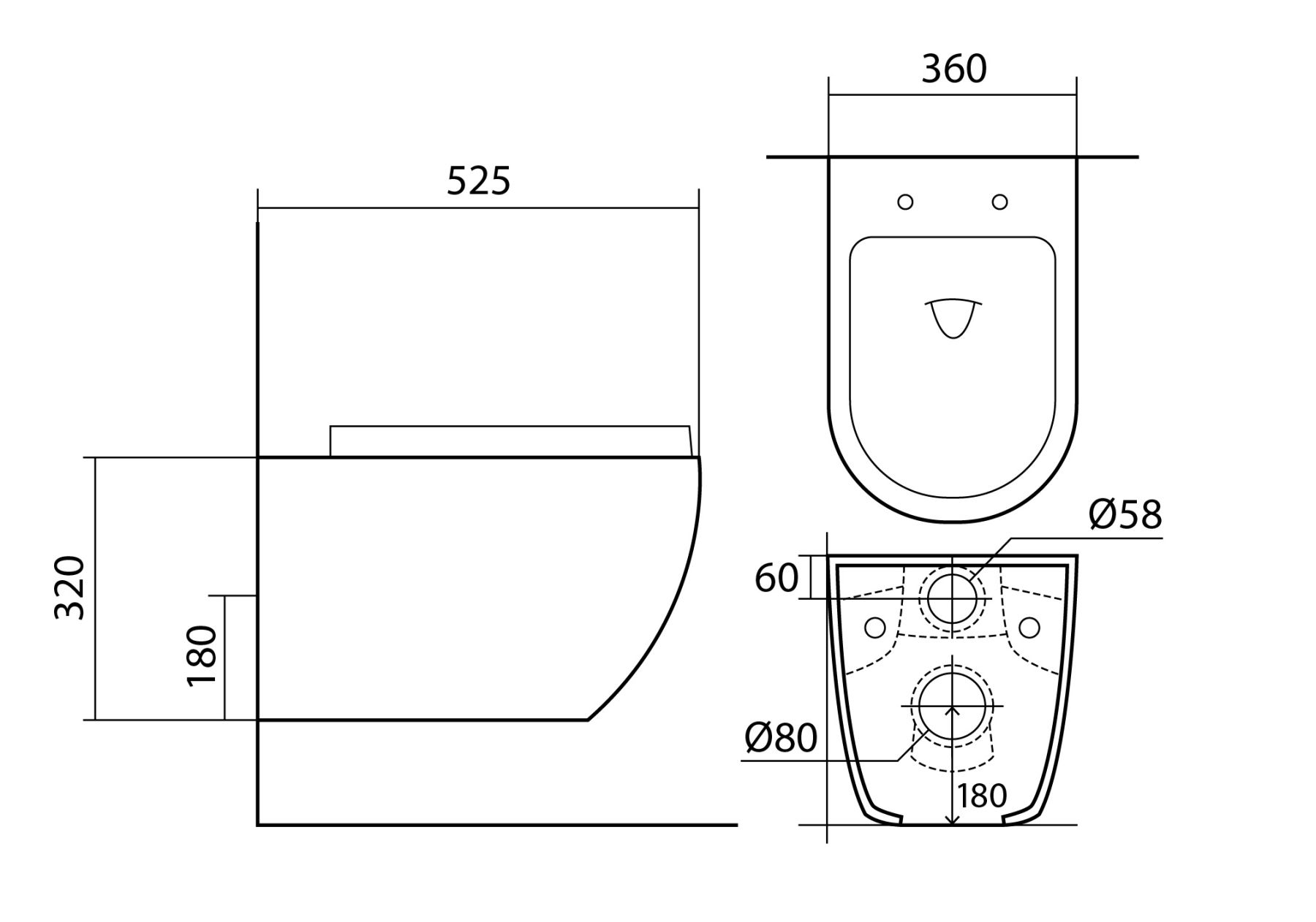 • Чаша унитаза безободковая 525*360*320