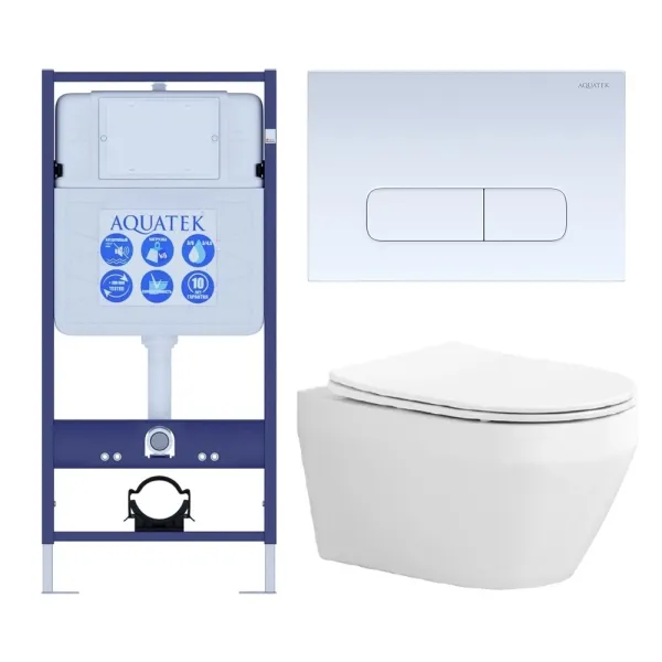 Комплект SET AQUATEK ЛЕЯ cm-013 4в1 унитаз с инсталляцией кнопкой и сиденьем микролифт купить