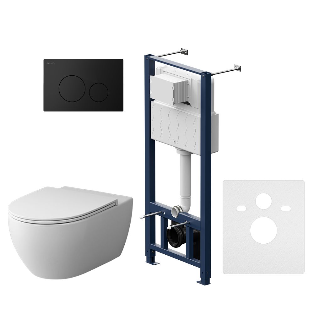 Комплект унитаза с инсталляцией AM.PM Awe IS49038.111700 с клав Pro L черный матовыйПолностью готовый к установке комплект: система инсталляции с клавишей, подвесной унитаз с сиденьем. Неразборная рама из стального профиля выдерживает нагрузку до 400 кг. Полностью изолированный бачок с качественной двухрежимной смывной арматурой укомплектован пневматической клавишей в черном матовом цвете. В комплекте все необходимые патрубки и крепления, а также прокладка между унитазом и стеной - звукоизоляция.Подвесной унитаз Awe FlashClean имеет одну из самых востребованных форм в керамике - дизайн в стиле organic, вдохновленный природой, идеально сбалансированные пропорции. Благодаря скрытым креплениям и скрытому фановому выходу уход за керамикой удивительно легкий. Эффективный каскадный смыв гарантирует идеальную чистоту с первого раза и 100%ное омывание поверхности унитаза.В комплекте быстросъемное сиденье из дюропласта с функцией микролифт. Механизм плавного опускания, рассчитанный на 100 000 закрываний - комфорт в использовании, механизм быстрого снятия - легкость в уходе за сиденьем и керамикой.