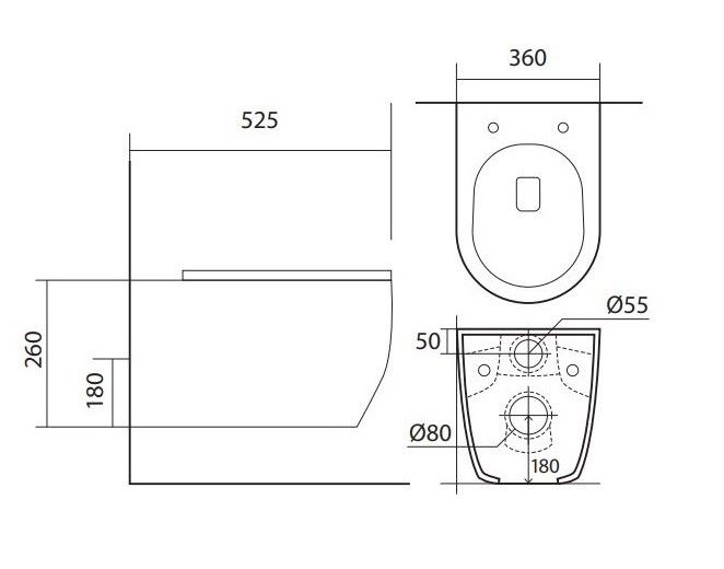 • Чаша унитаза безободковая 525*360*260