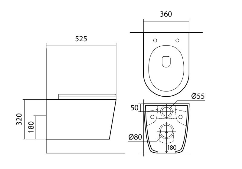 • Чаша унитаза безободковая 525*360*320