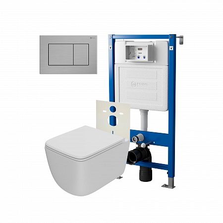 Сет: Система инсталляции Point Элемент для подвесного унитаза PN45120 + Клавиша смыва для инсталляции Point Ника, нержавеющая сталь, сталь брашированная, PN44081SB + Унитаз подвесной Point Меркурий безободковый, сиденье дюропласт микролифт, быстросъем, белый матовый PN41831WM