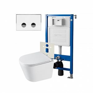 Комплект унитаза с инсталляцией Point Элемент PN48327WC с сиденьем МикролифтСет: Система инсталляции пневматическая Point Элемент П для подвесного унитаза PN45121 + Клавиша смыва для пневматической инсталляции Point Венера, белый/хром, PN44071WC + Унитаз подвесной Point Венера безободковый, белый, сиденье дюропласт микролифт быстросъемное PN41071