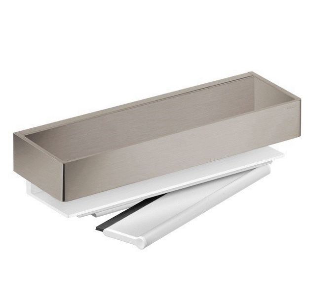 KEUCO Edition 11 11159050000 - Корзинка для душа со встроенным стеклоочистителем (алюминий | никель шлифованный). Съемная, со скрытым креплением. Корзинка для душевых принадлежностей комплектуется встроенным скребком для сгона воды. В ней достаточно места для геля, шампуня и других средств.