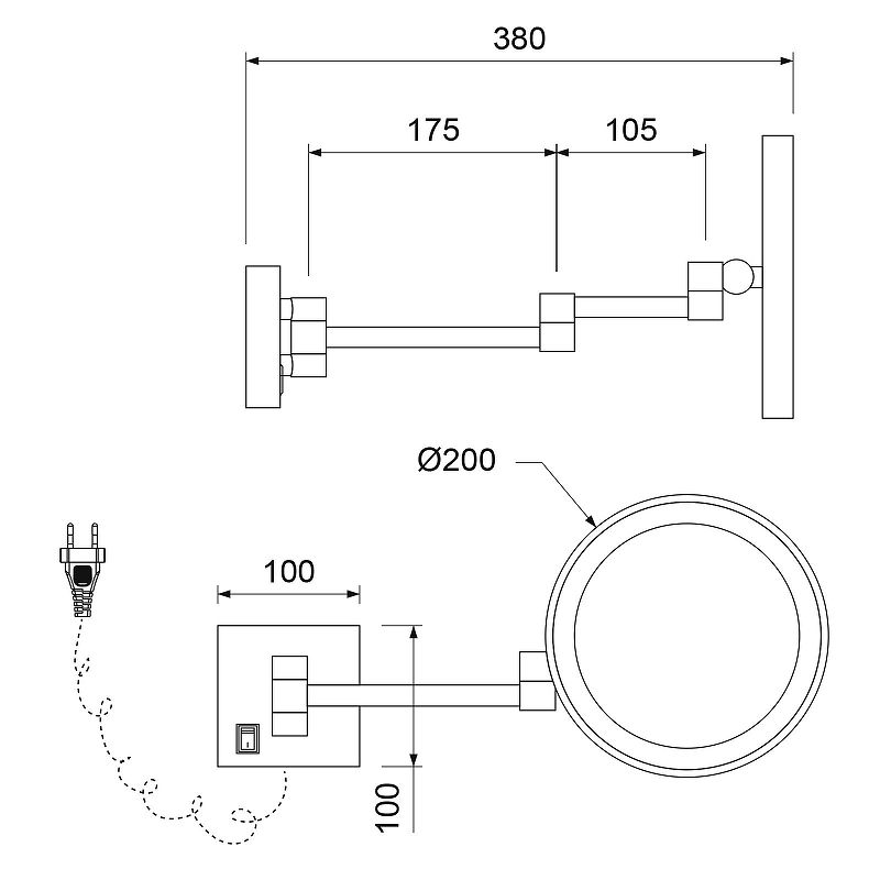 Косметическое зеркало Timo Luiro 18474/03, 20 см, с подсветкой, 5х увеличение, цвет черный