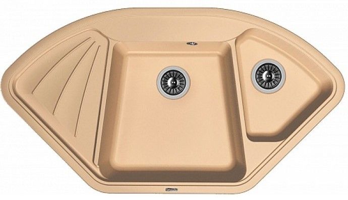 Угловая врезная мойка с двумя чашами для кухни Florentina Капри изготовлена из композитного материала.