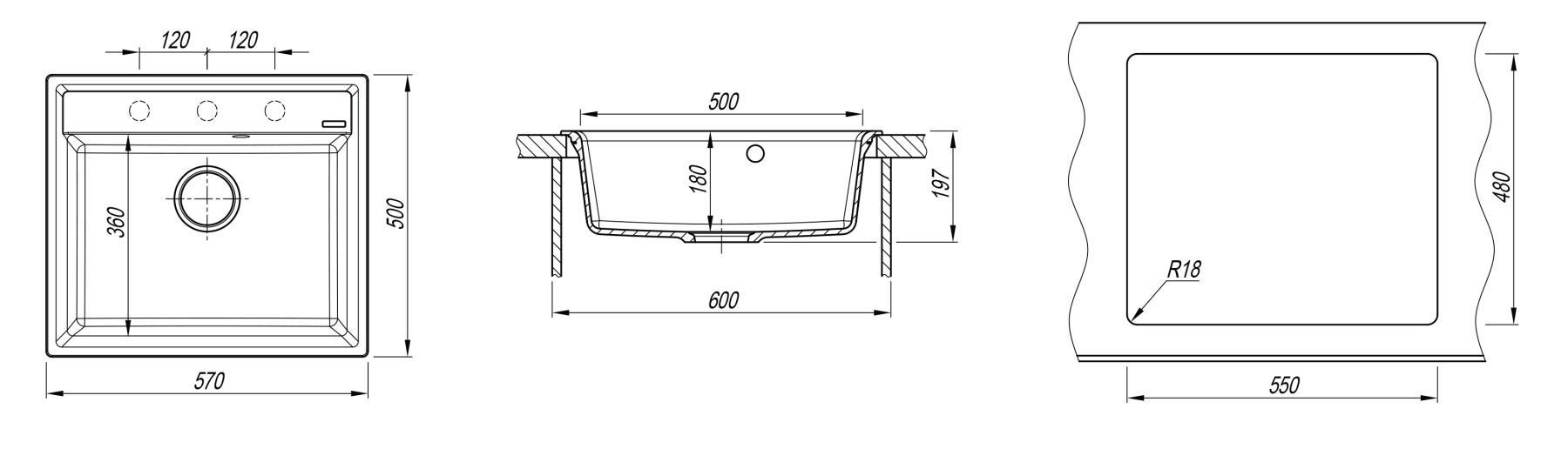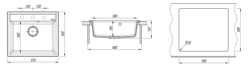 • Отверстия под смеситель: