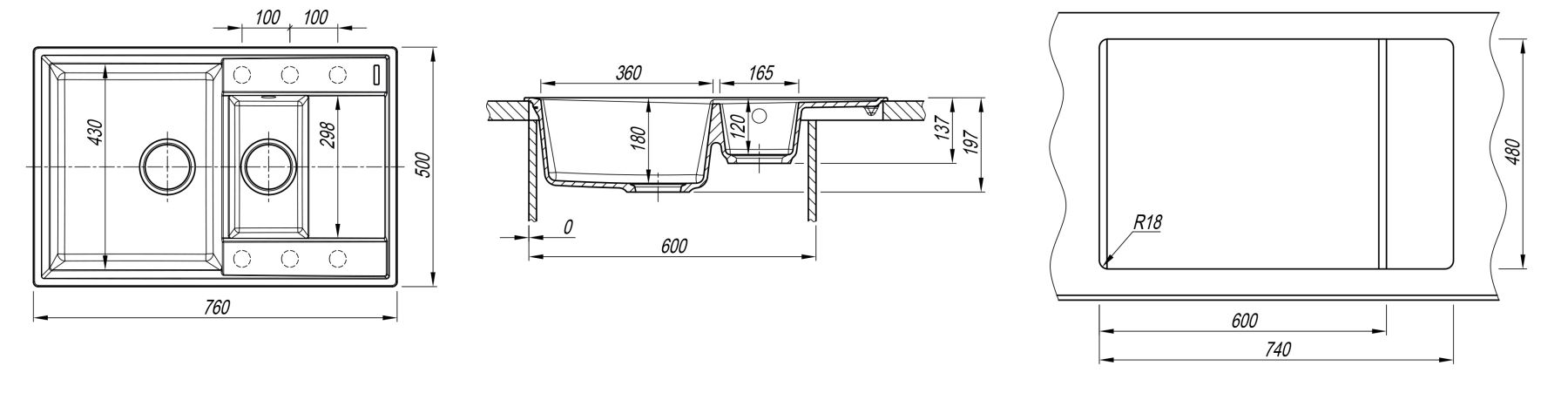 • Отверстия под смеситель: