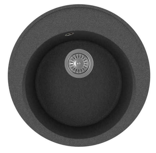 Круглая мойка с большой чашей для кухонного шкафа 45 смМатериал — кварцевый композитПредусмотрены дополнительные отверстия для установки аксессуаровГабариты нетто ( ДхШхВ) 510х510х217 мм