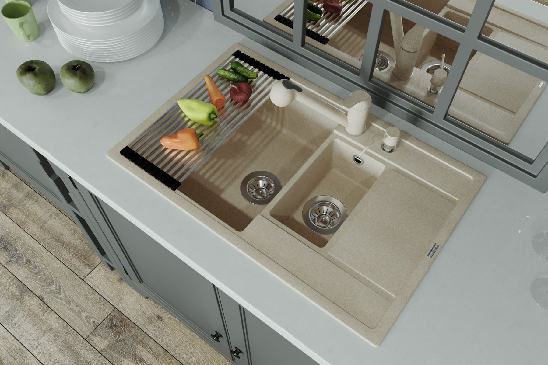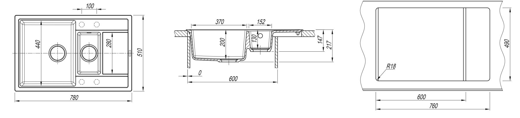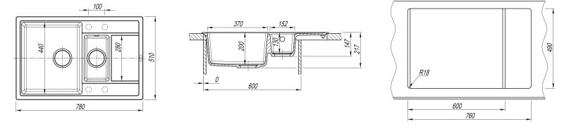 • Практичная мойка с дополнительной малой чашей;