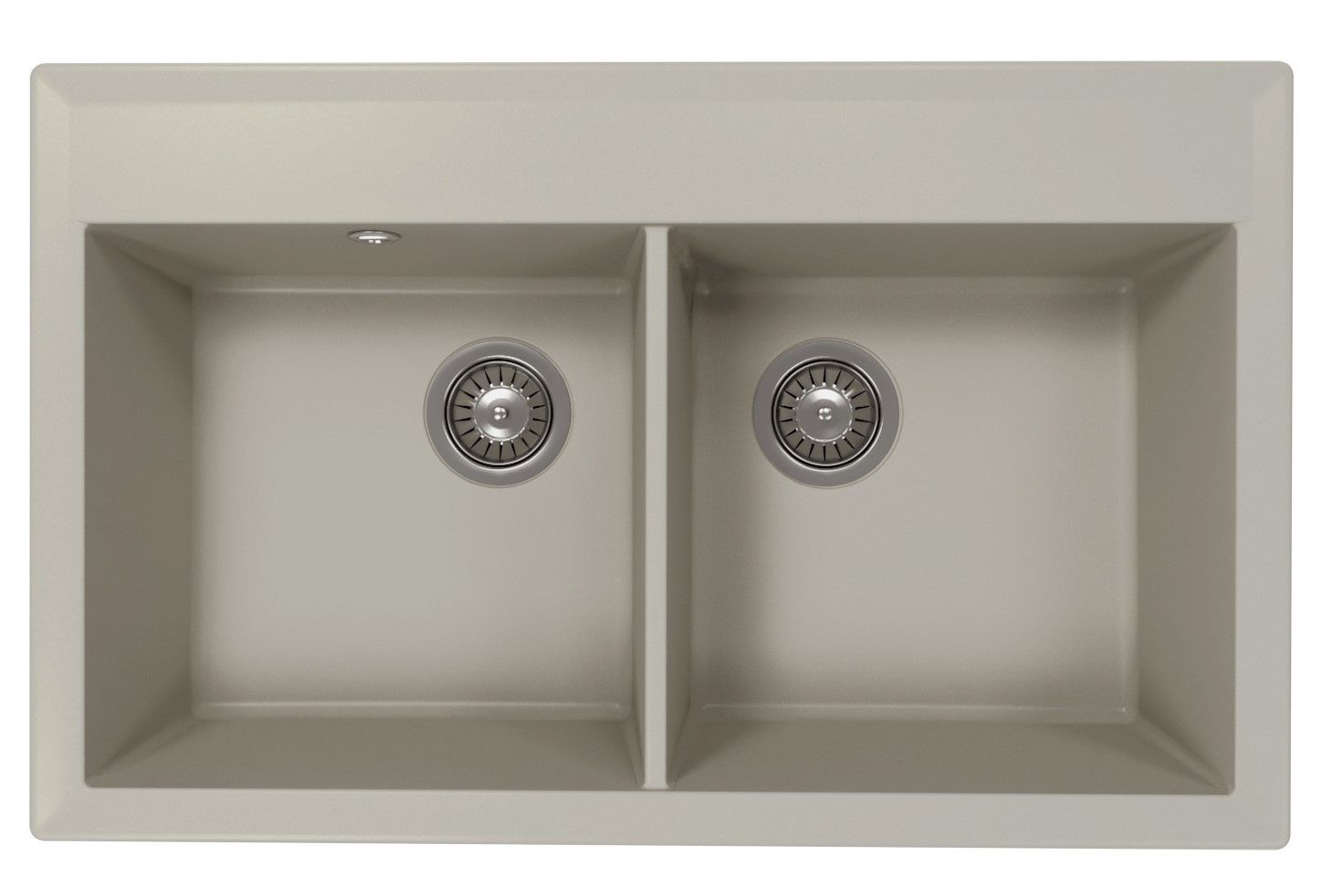 • Прямоугольная мойка с двумя большими чашами для кухонного шкафа 80 см