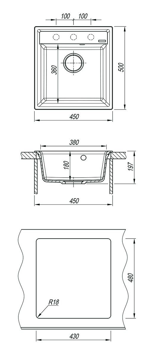 Все модели моек оснащены комплектами сливной арматуры с переливами и сифоном для подключения посудомоечной или стиральной машины, а также крепежом для монтажа к столешнице.