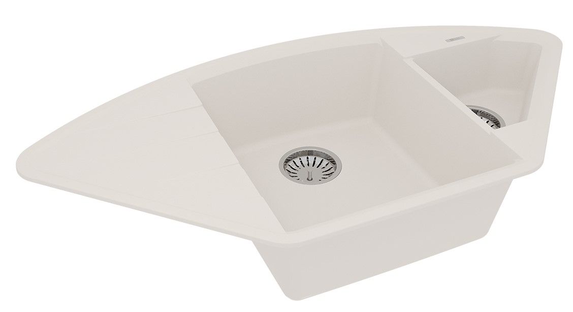 Благодаря своей форме, мойка подойдет как для кухонного гарнитура с подводкой воды в одном из углов помещения, так и для стандартного размещения в прямом шкафу. Эргономичная мойка с дополнительной чашей, которую можно использовать для мытья овощей и фруктов или для размораживания продуктов.