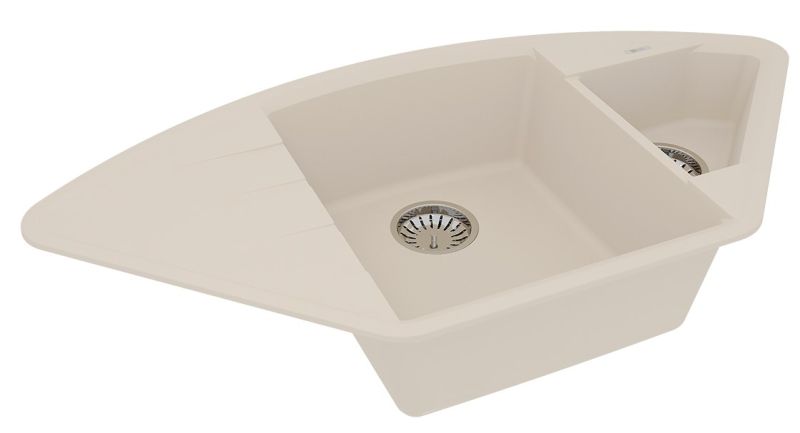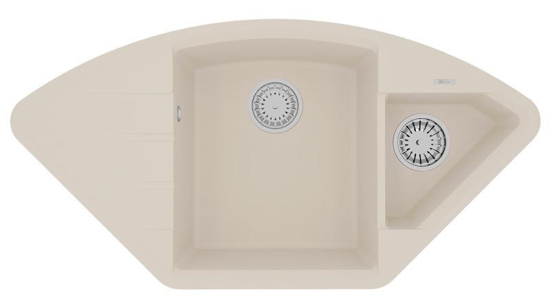 Благодаря своей форме, мойка подойдет как для кухонного гарнитура с подводкой воды в одном из углов помещения, так и для стандартного размещения в прямом шкафу. Эргономичная мойка с дополнительной чашей, которую можно использовать для мытья овощей и фруктов или для размораживания продуктов.
