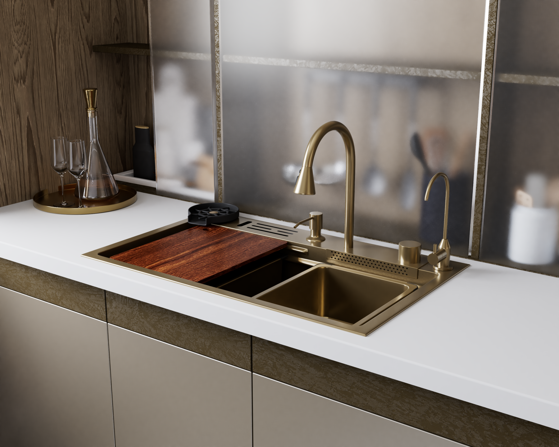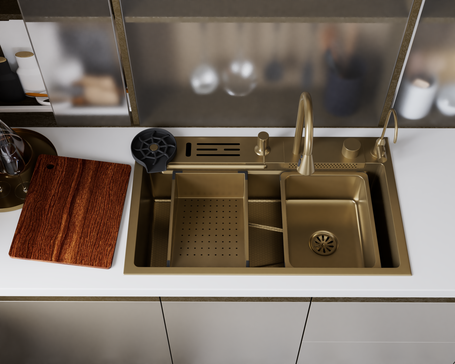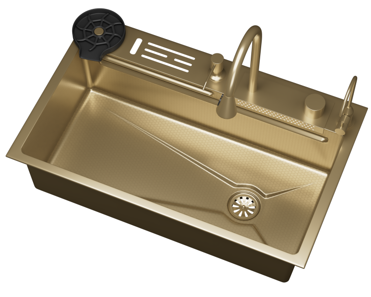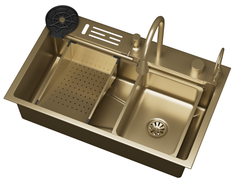 Кухонная мойка многофункц. DQ нерж.сталь матовое золото в комплекте со смесителем и аксессуарами (DKS754607)