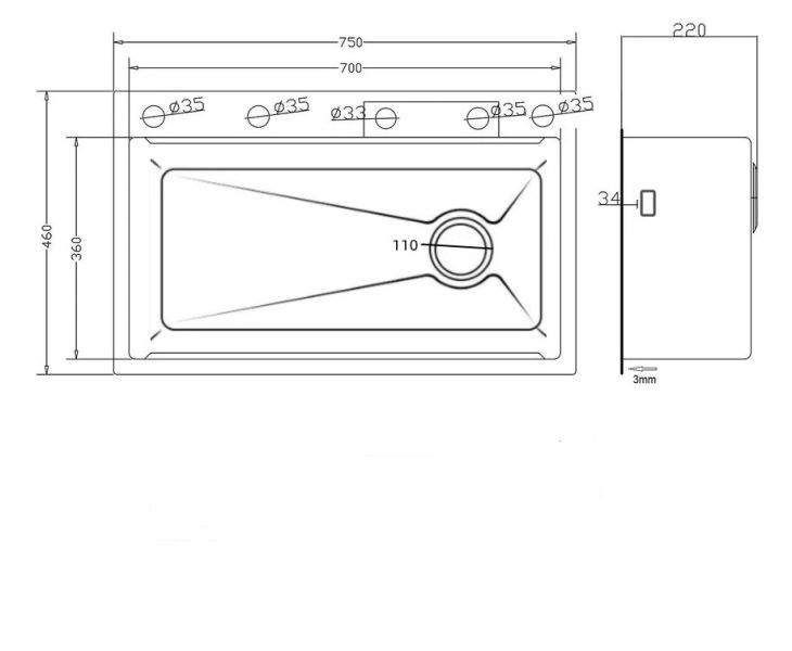 9) Во всех моделях моек из нержавеющей стали диаметр отверстия под сифон 90мм