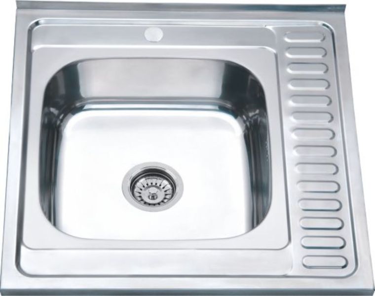 Кухонная мойка глянцевая, левая, толщина 0,6мм, размер 600x600мм, глубина чаши 170мм материал нержавейка, в комплекте евро сифон