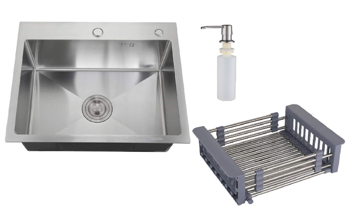 Набор 3 в 1 РМС (кухонная мойка+ корзина раздвижная+ дозатор врезной). В комплекте: евросифон высокого качества.Металлические элементы изготовленны из нержавеющей стали.Гофра с универсальным выходом 40/50. Цвет: нержавеющая сталь.Размер: 500*500 мм.Глубина: 200 мм.Толщина: 1-3 мм