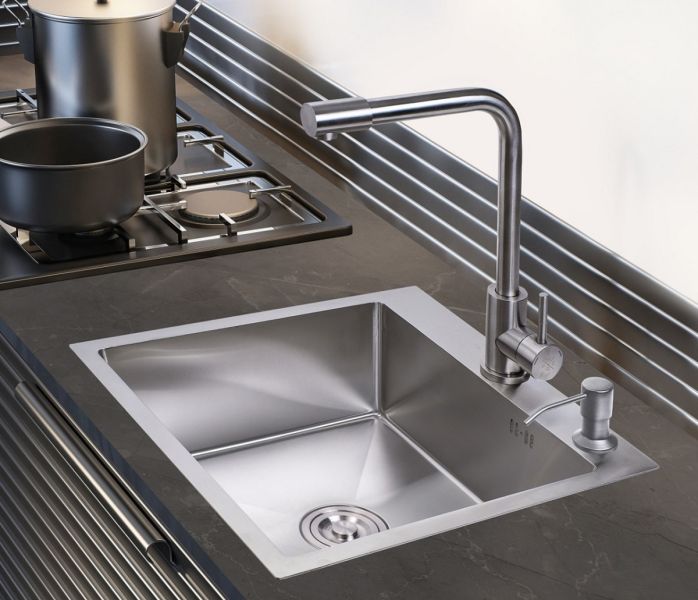 Кухонная мойка РМС MR-5050 с корзиной и дозатором нержавеющая сталь купить