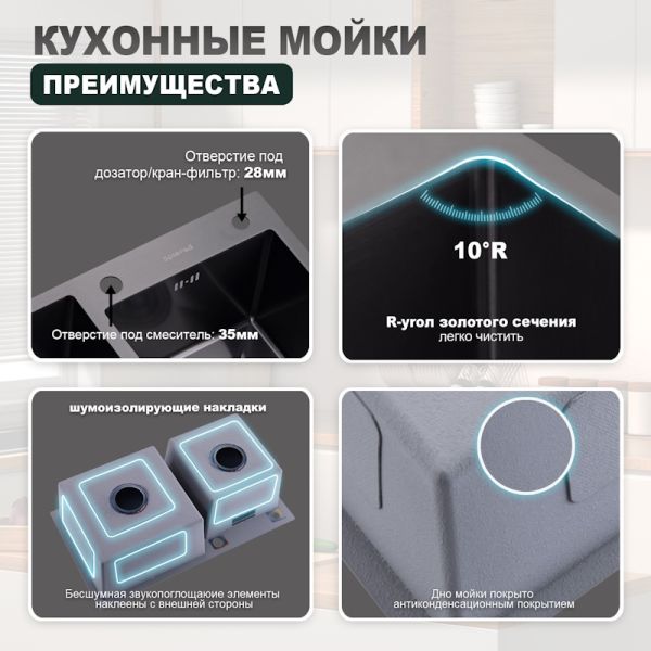 Кухонная мойка Splenka S706.7843.09, графит. Размер - 780*430*220мм. Кухонные мойки Splenka отли... Подробнее