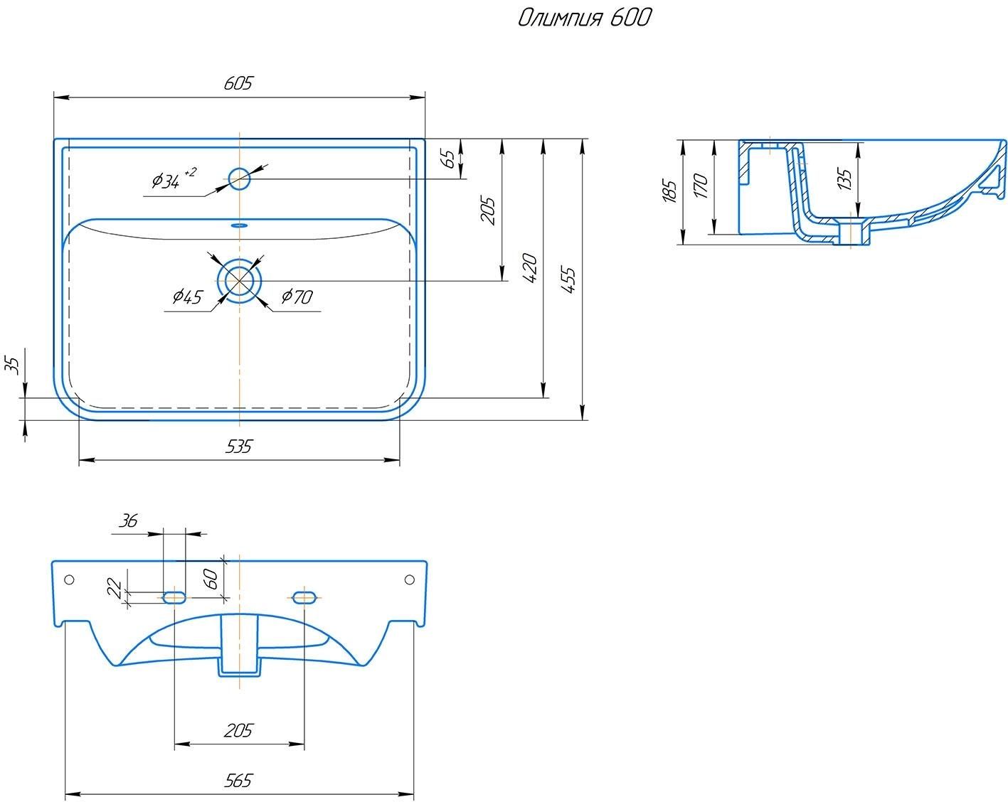 Раковина Kirovit ОЛИМПИЯ 60 отлично впишется в современный дизайн ванной комнаты и гармонично дополнит любой интерьер.