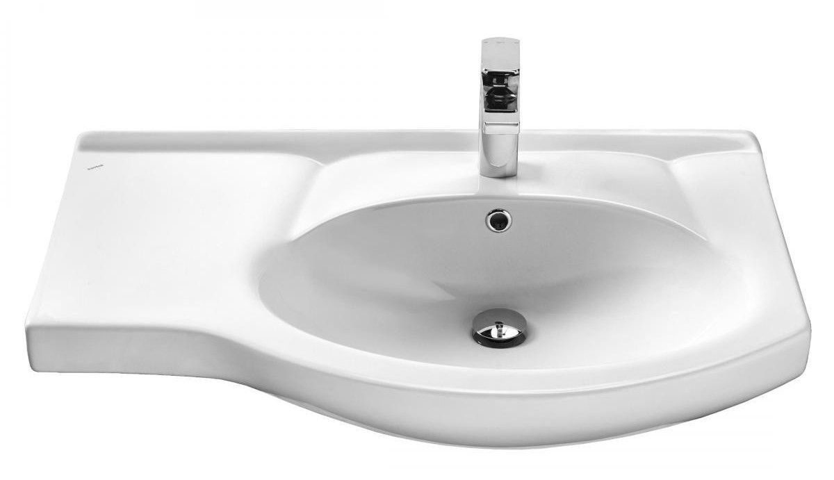Керамическая раковина Santek КОРАЛЛ 82 отличается нестандартной формой с крылом, сверкающей белизной, высоким качеством исполнения, практичностью и функциональностью. Крыло слева обеспечивает больше места для размещения необходимых мелочей, а встраиваемая в мебельную тумбу конструкция создает дополнительное пространство для хранения.