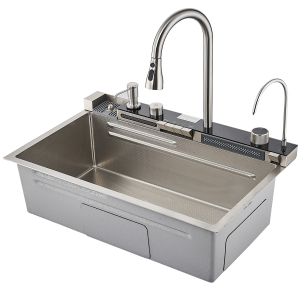Многофункциональная кухонная мойка Savol S-SC001L с водопадом 75см сатин купить