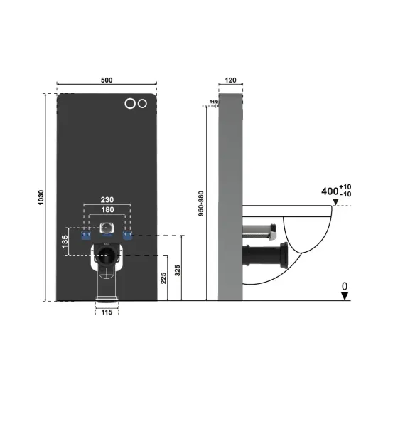 Модуль - инсталляция G111W с пневматическими кнопками итальянского бренда Ceruttispa предназначена для крепления к капитальной стене. Данный модуль НЕ требует штробления стен (не нужна ниша для установки).
