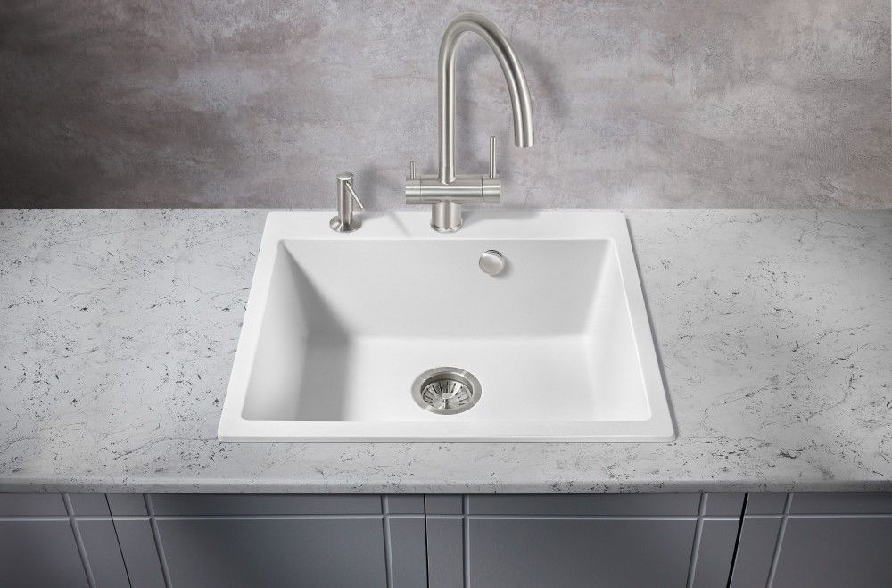 Каменная врезная прямоугольная мойка для кухни MILACIO Murcia 60 Cuarzo (MC.77012), выполненная в белом матовом цвете, идеально впишется как в современный, так и классический интерьер. Европейское качество, соответствующее международным стандартам!
