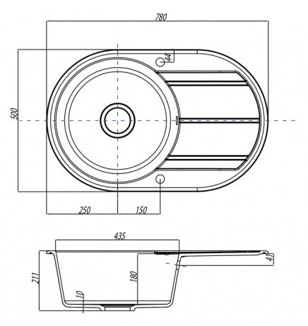 • Отверстия под смеситель: