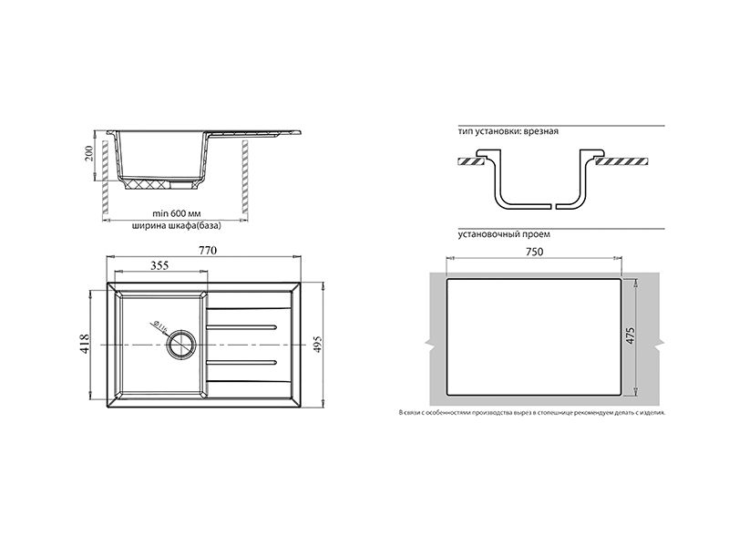 Мойка кухонная GranFest Чёрная Quadro Q-780 L чер